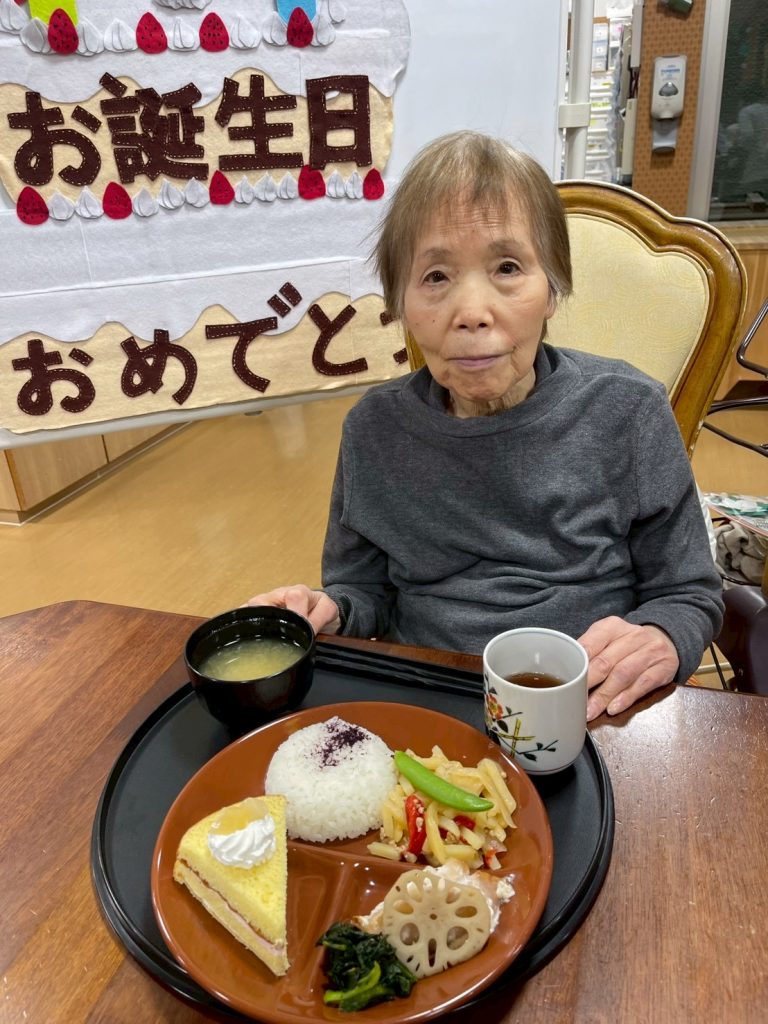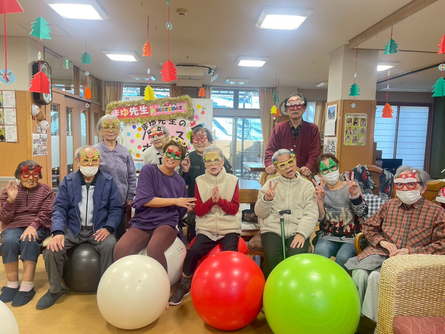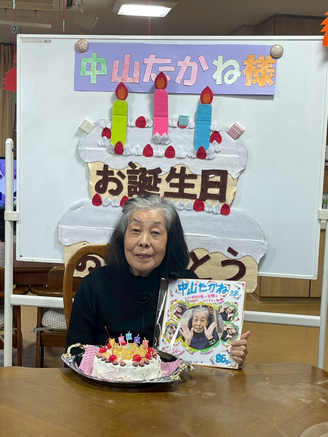 手作りケーキでお祝いをしました。バランスボールのまゆ先生の誕生日もしました。