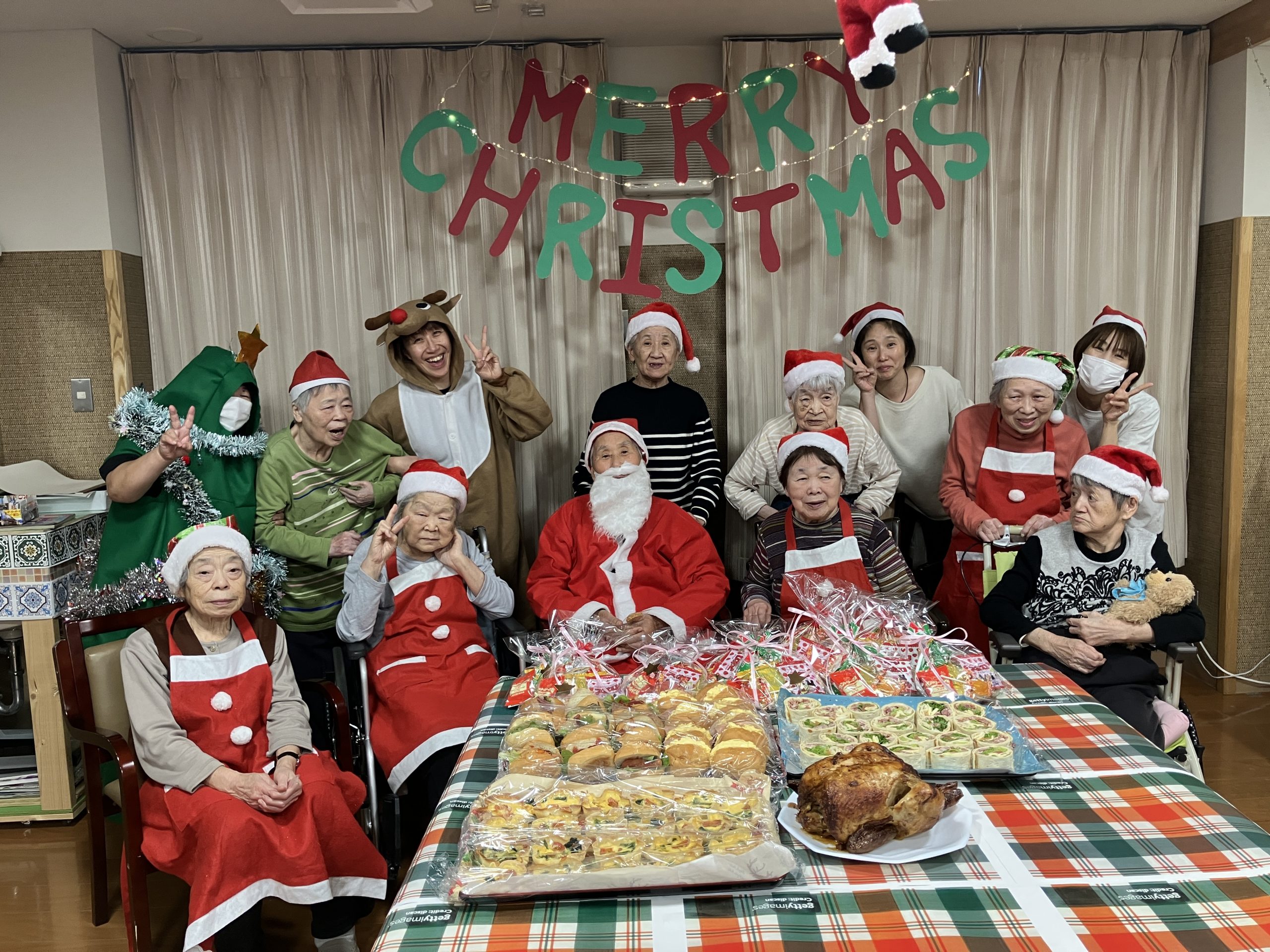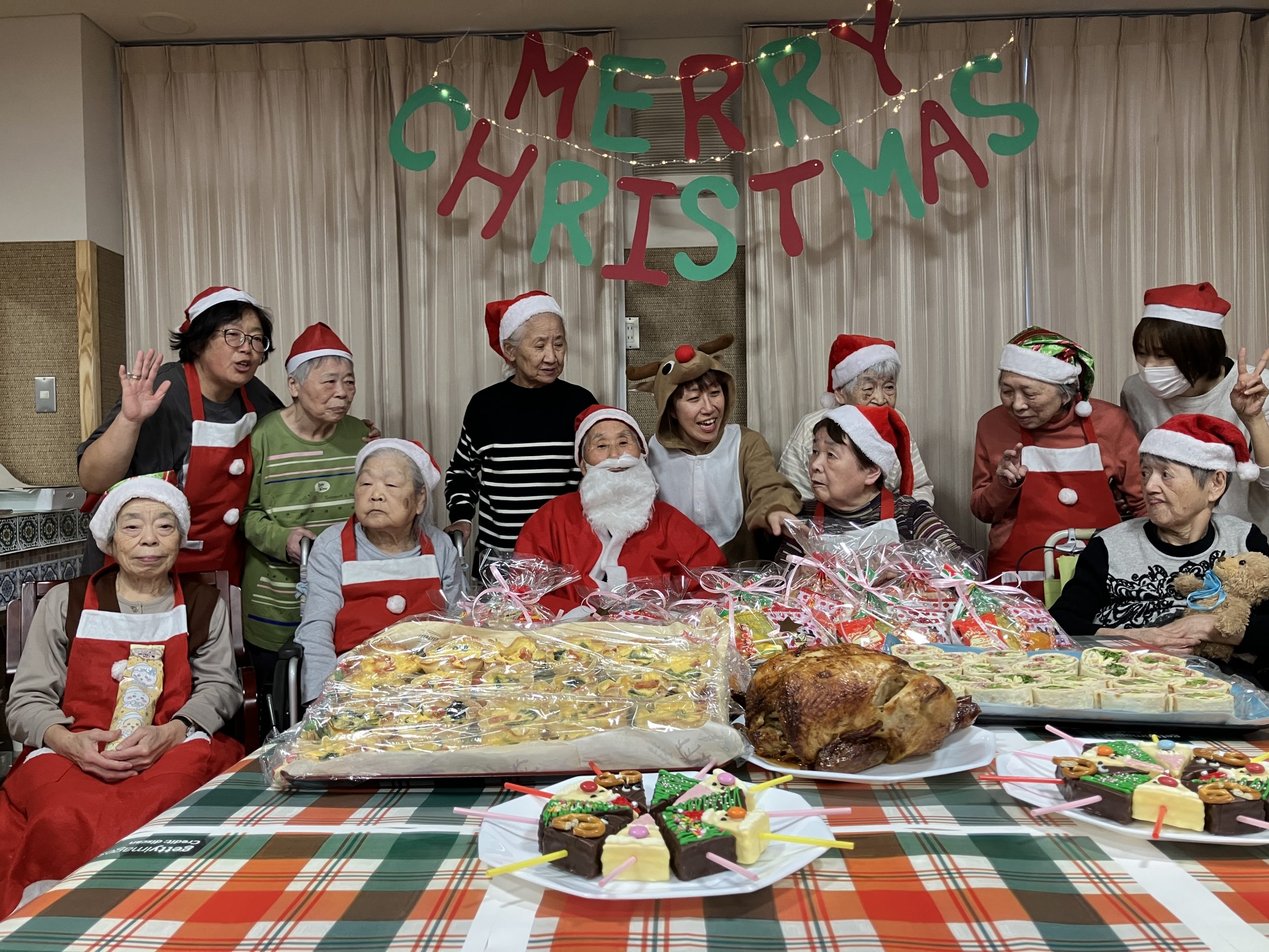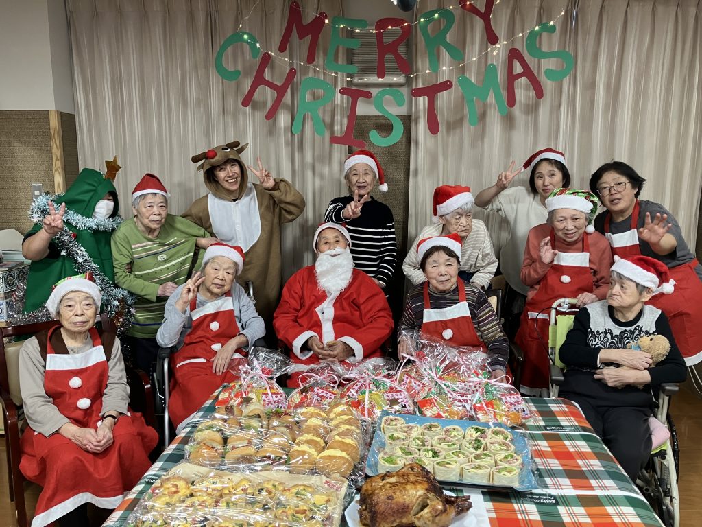 クリスマスディナーパーティー クリスマスディナーパーティーを開催しました。 今年のサンタクロースは、本場フィンランドから?と思うくらいのクオリティー❤ プレゼントや、クリスマスチキン、職員の作ったごちそうの数々! 楽しい様子はインスタグラムの動画をご覧ください。