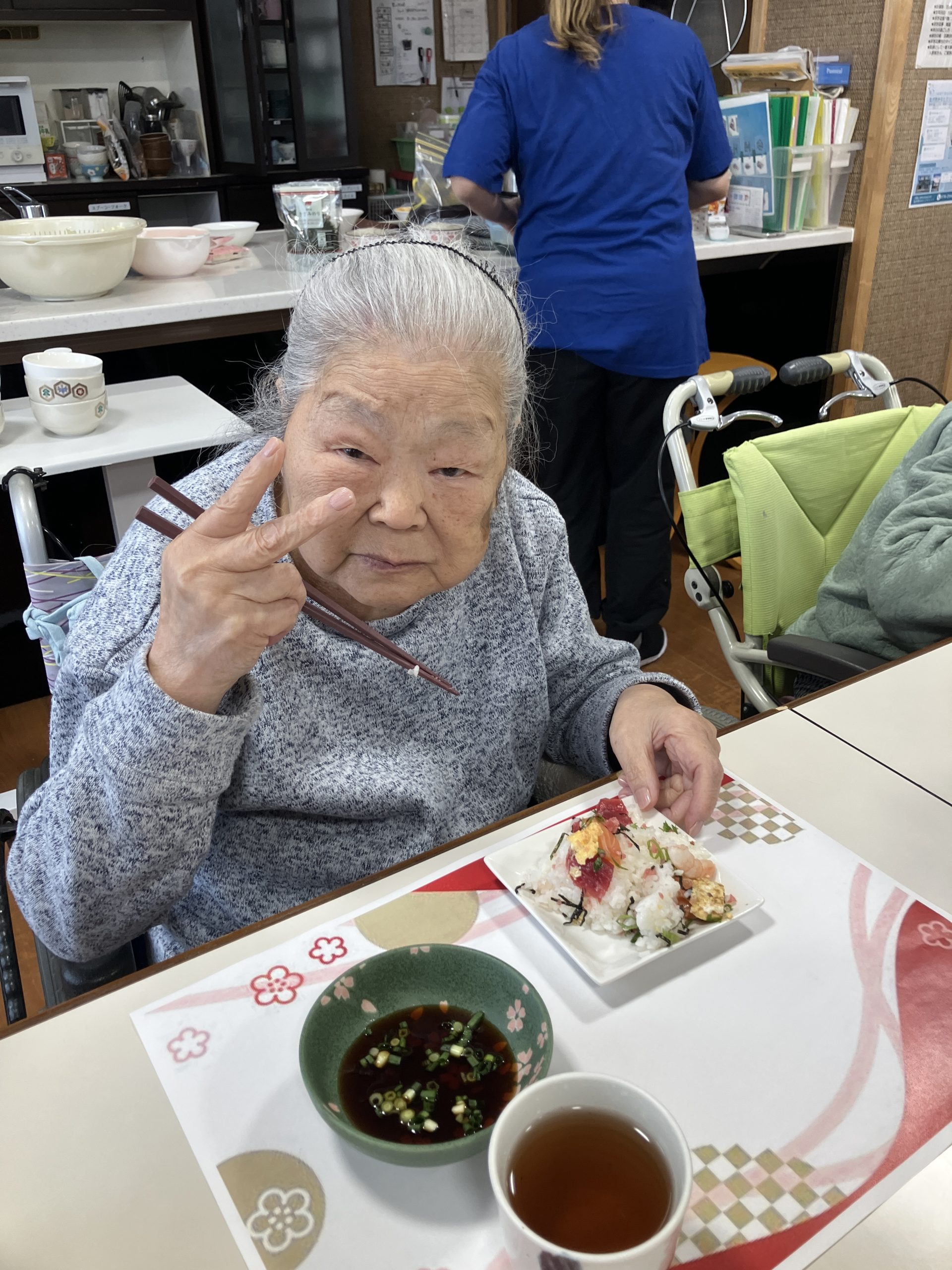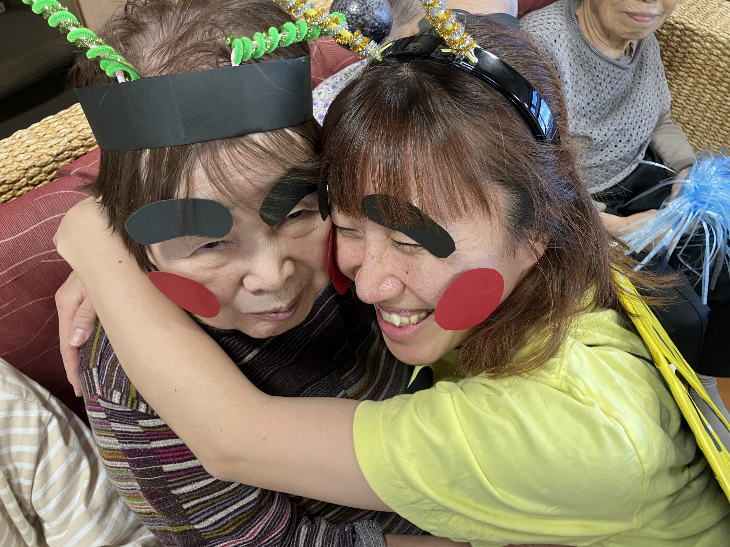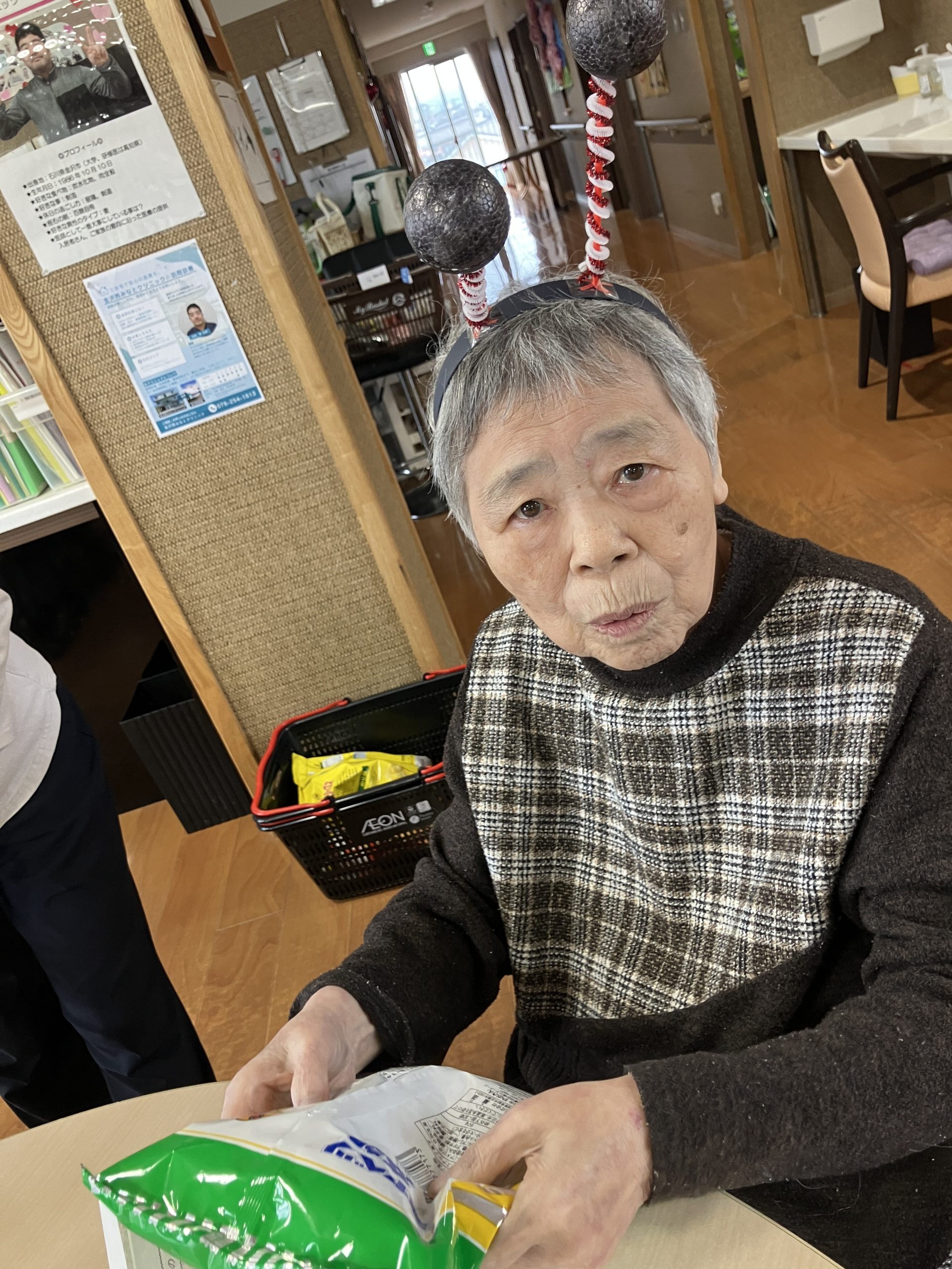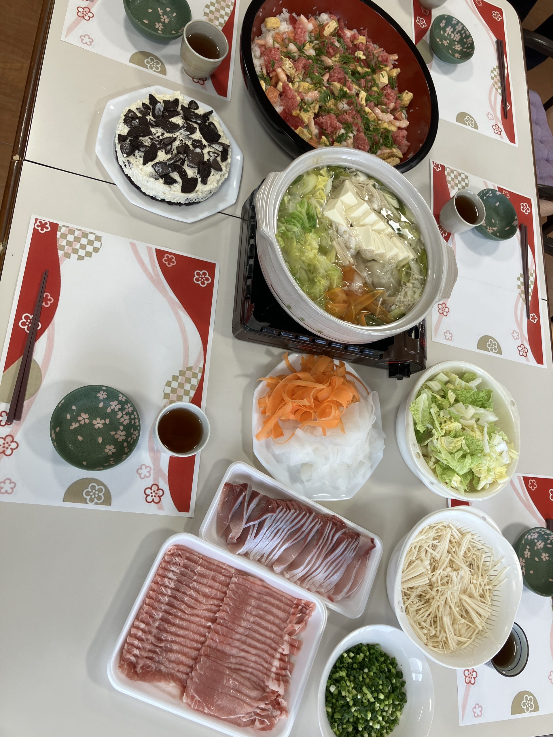 新年会 今年は、丙午!新年会をしました。職員の踊りを披露し皆様からのたくさんの声援をいただきまま。一緒にポンポンを振って応援し、盛り上げていただきました。 かるたや羽根つき、トランプ。グループに分かれて楽しみました。 おみくじには、番号が書かれており、ミカンやおかしなどの景品もついており、大変喜んでいただきました。 メインメニューは、皆様待望の「ブリしゃぶ」箸が止まりません。私たちが思った以上に喜んでいただきました。 本年も、楽しいイベントう提供できるよう職員一同頑張ります。よろしくお願い致します。