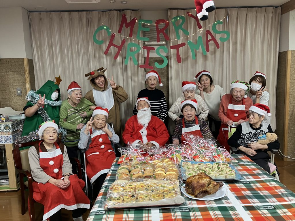 2025年12月29日 クリスマス会 ゲームに、ランチ、職員によるダンス、手作りケーキと楽しい1日になりました。 床にテープで作ったクリスマスツリーの中におじゃみを投げ入れ、得点を競うゲーム。 ランチでは、チキン、サラダ、サンドイッチと美味しく頂きました。 ダンスでは、職員全員でダンシングヒーローを踊り、ケーキをおやつに食べてます。 ……